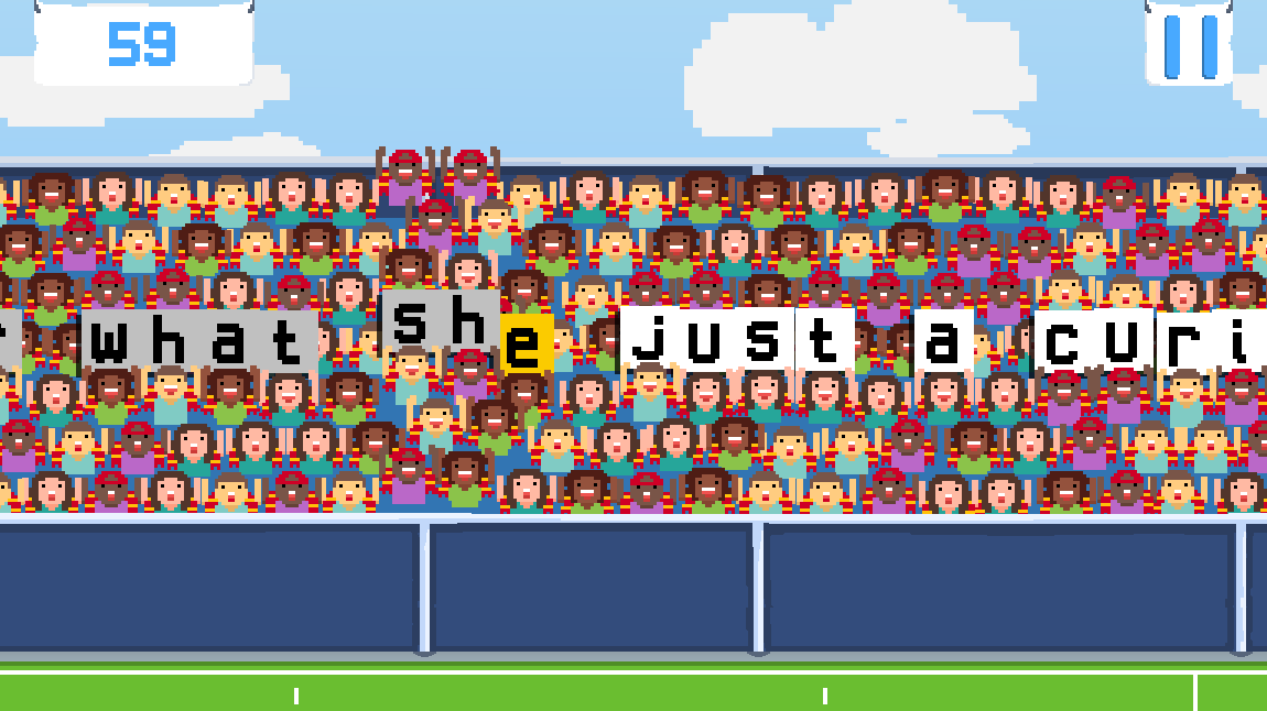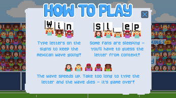 Press the keys matching the letters on the signs held up by the crowd to move the Mexican wave - remember to press space between words when your reach a gap!